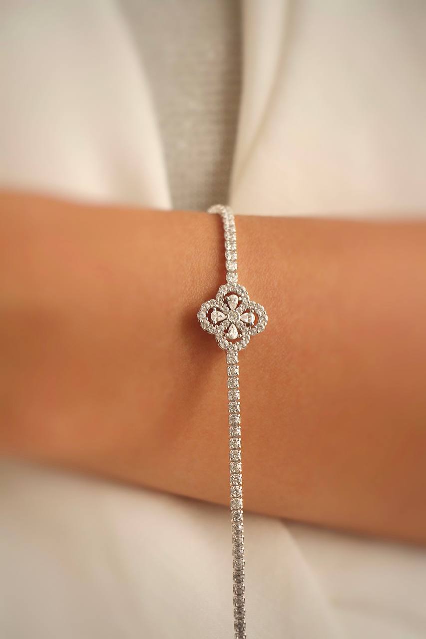 دستبند نقره زنانه جواهری مدل ونکلیف جواهری عیار ۹۲۵