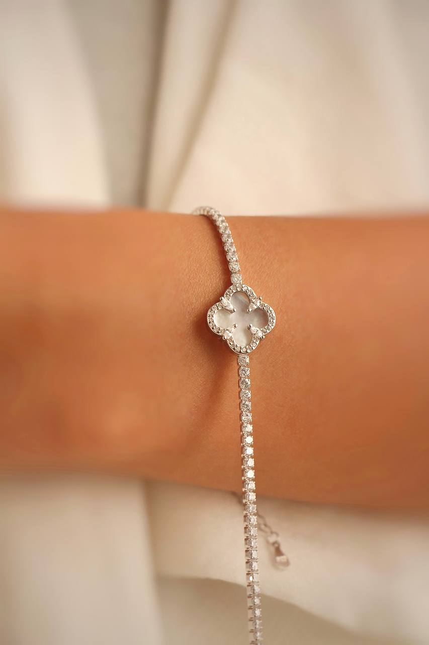 دستبند نقره زنانه جواهری مدل ونکلیف صدفی عیار ۹۲۵