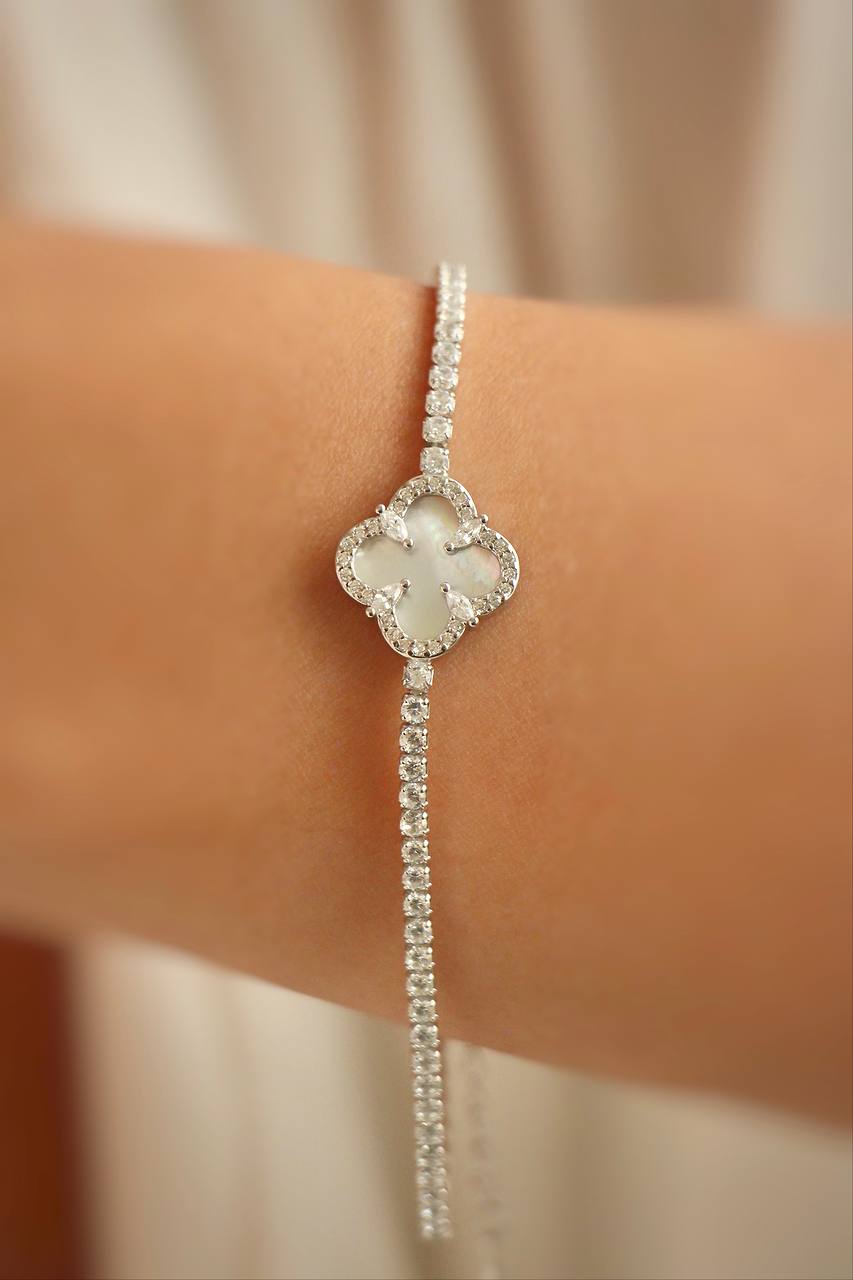 دستبند نقره زنانه جواهری مدل ونکلیف صدفی عیار ۹۲۵